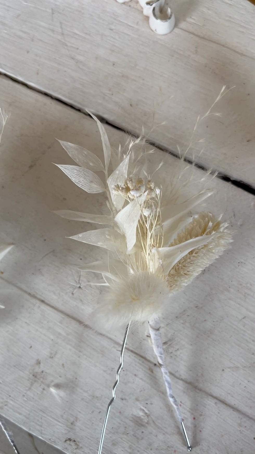 Boho dried flower pampas hair pins in neutral and white