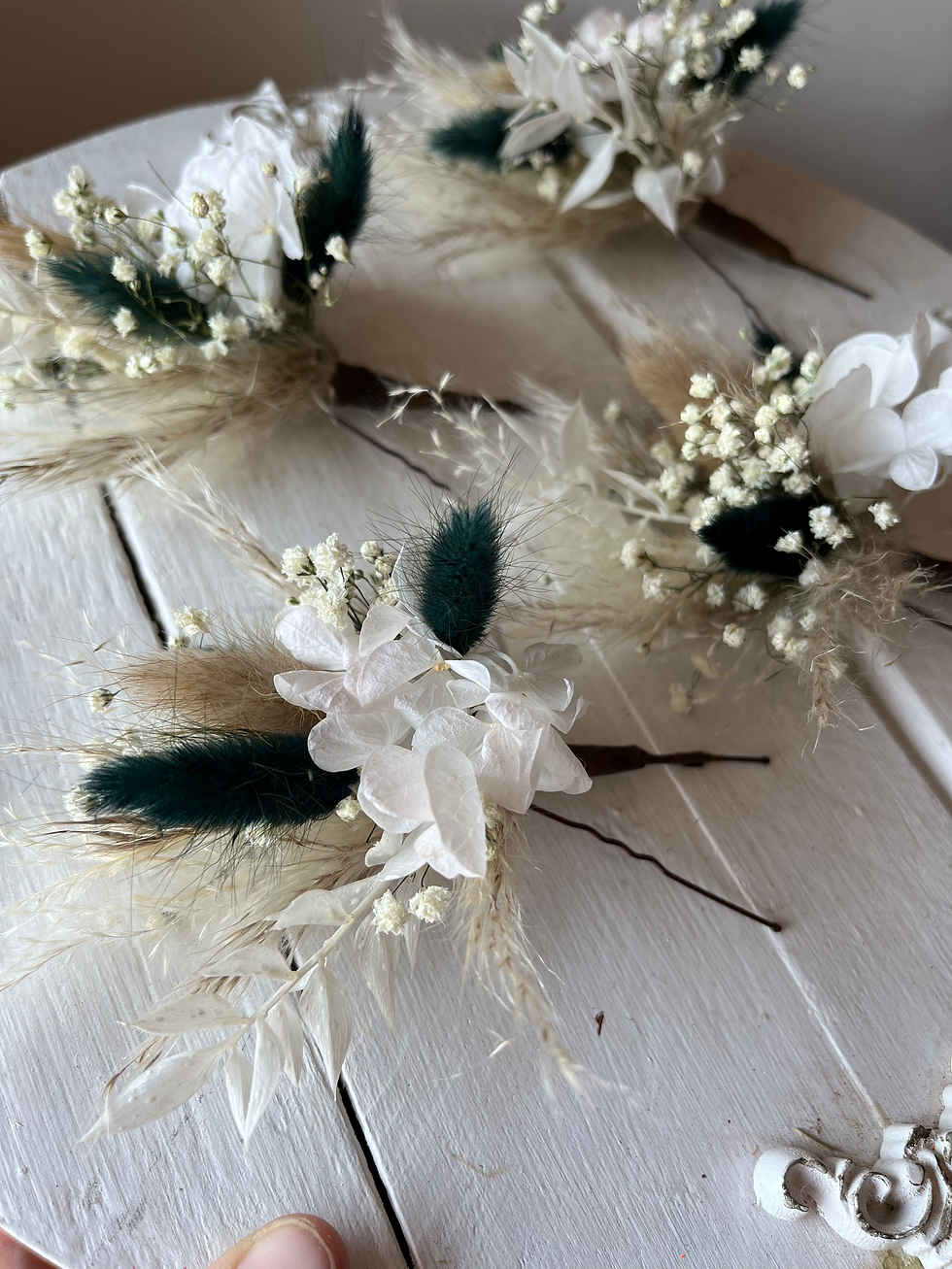 Emerald & Natural dried flower hair pins
